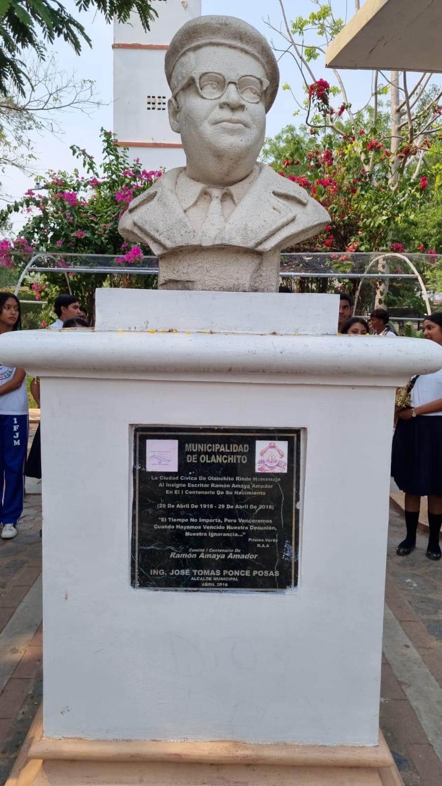 Olanchito,Yoro- Un día como hoy 28 de abril 1916, nace una de las grandes luminarias literarias de Centroamérica, por tal razón instituciones de educación secundaria se hicieron presente como ser: Instituto FranciscoJ. Mejía , José Trinidad Cabañas, y el Instituto Ramon Amaya Amador-Armenia,