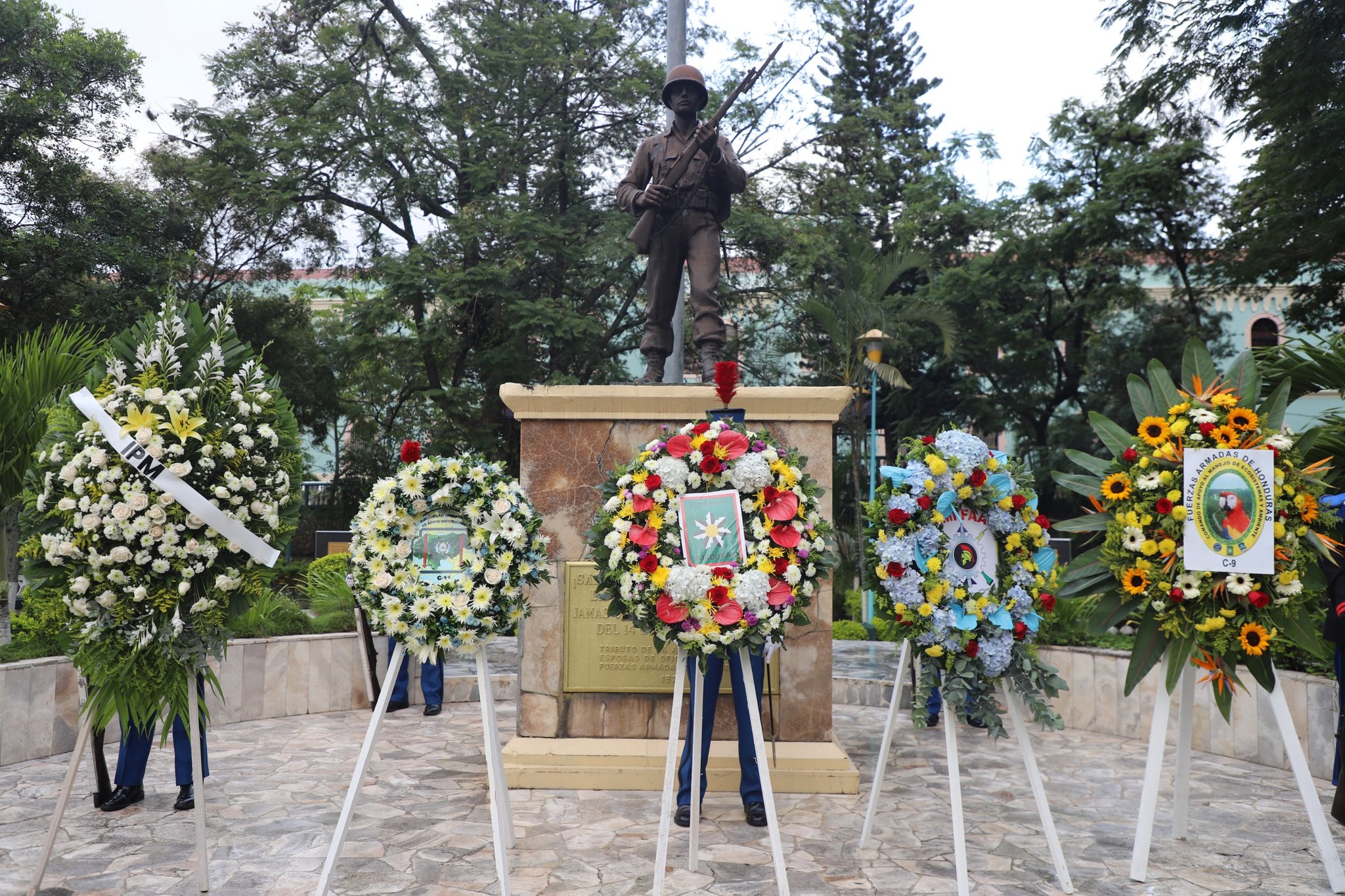 Otro acto se desarrolló en el Parque El Soldado, en Comayagüela, donde oficiales de gala depositaron ofrendas florales en el Monumento al Soldado. Al evento asistieron representantes del Ejército, el Comando de Apoyo al Manejo de Ecosistemas y Ambiente, el Instituto de Previsión Militar (IPM), la Industria Militar de las Fuerzas Armadas (IMFFAA) y el Comando de Operaciones de Apoyo Institucional.