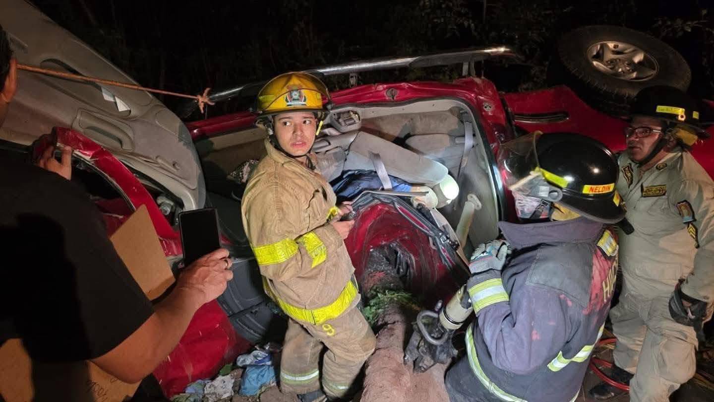 El accidente dejó un escenario de destrucción total, con el vehículo reducido a un amasijo de hierro, lo que evidencia la magnitud del impacto.