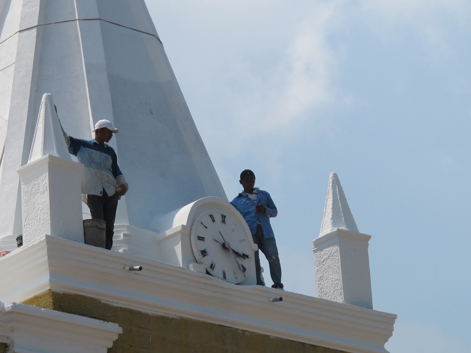 Trujillo, Colon. Carlos Morazán desde hace muchos  años le da mantenimiento al reloj de la iglesia católica de esta ciudad, uno de los relojes más antiguos del País después del que está en Comayagua, fue traído en los años 1889 desde España, está es una joya histórica.