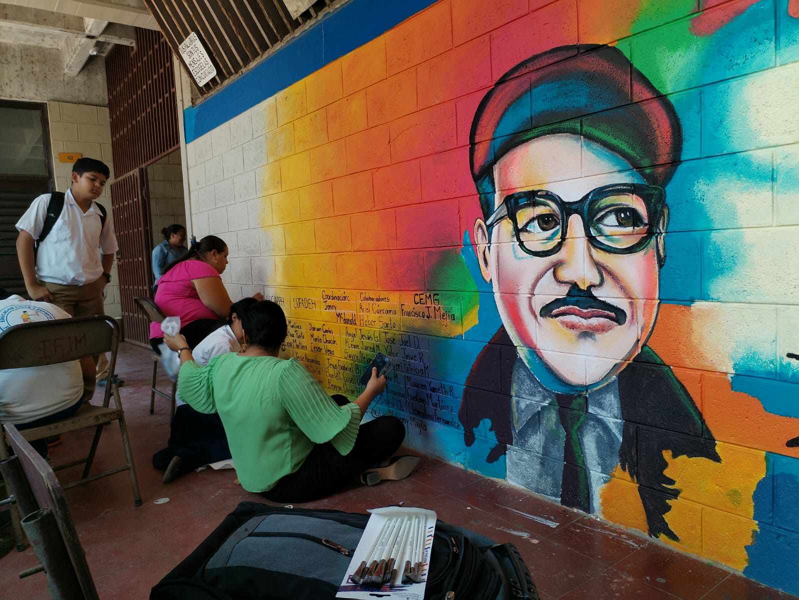 Como parte del conocimiento adquirido, los jóvenes pintaron un mural en una de las paredes del instituto Francisco J Mejía, en homenaje al escritor olanchitense Ramón Amaya Amador y a don Quijote de la Mancha, en ocasión del Día del Idioma Español.