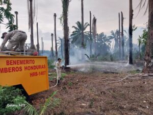 Tocoa. Unas diez hectáreas de una finca de palma africana, sin producción en la aldea de Cuaca, fueron arrasadas por un incendio que tuvo que ser controlado por las autoridades bomberiles de la ciudad de Tocoa, en el departamento de Colón.