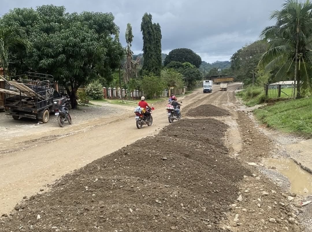 “Por lo menos ya están tirando material en los agujeros , ojalá se pueda hacer una carretera nueva .” dijo Mario Navarro vecino de Descombros .