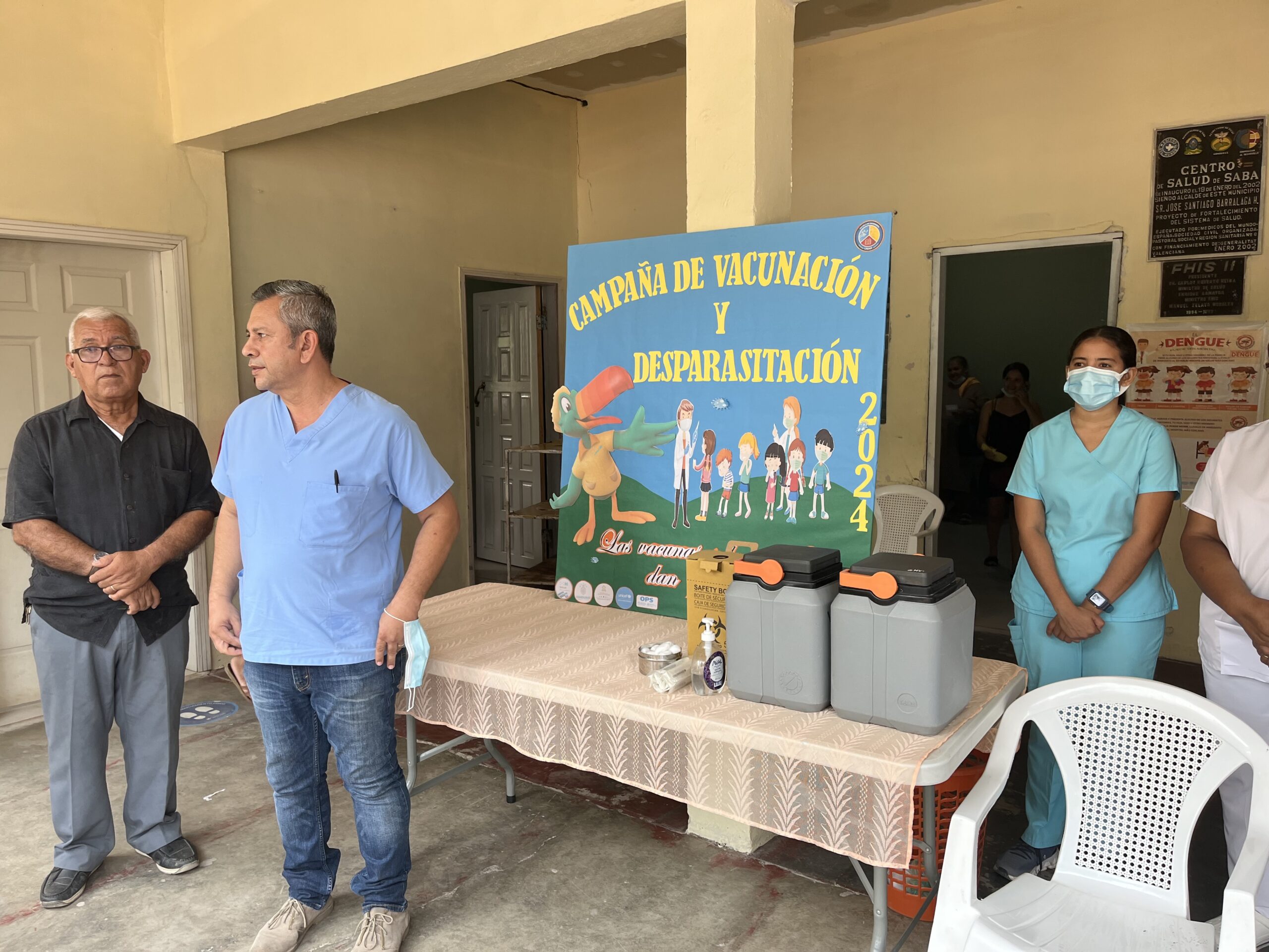 Saba,Colón- Con poco personal pero inició la vacunación de niños en este Municipio,la Colonia Rey Martínez es el primer lugar que van a vacunar.