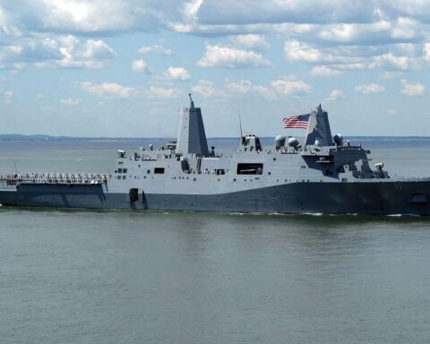 USA – La base militar de Norfolk en Vieginia,es el punto de partida de los buques de Estados Unidos hacia Venezuela. Hoy zarpò el Anfibio USS San Antonio. El buque anfibio USS San Antonio (LPD-17) partio desde el puerto de Norfolk, Virginia,