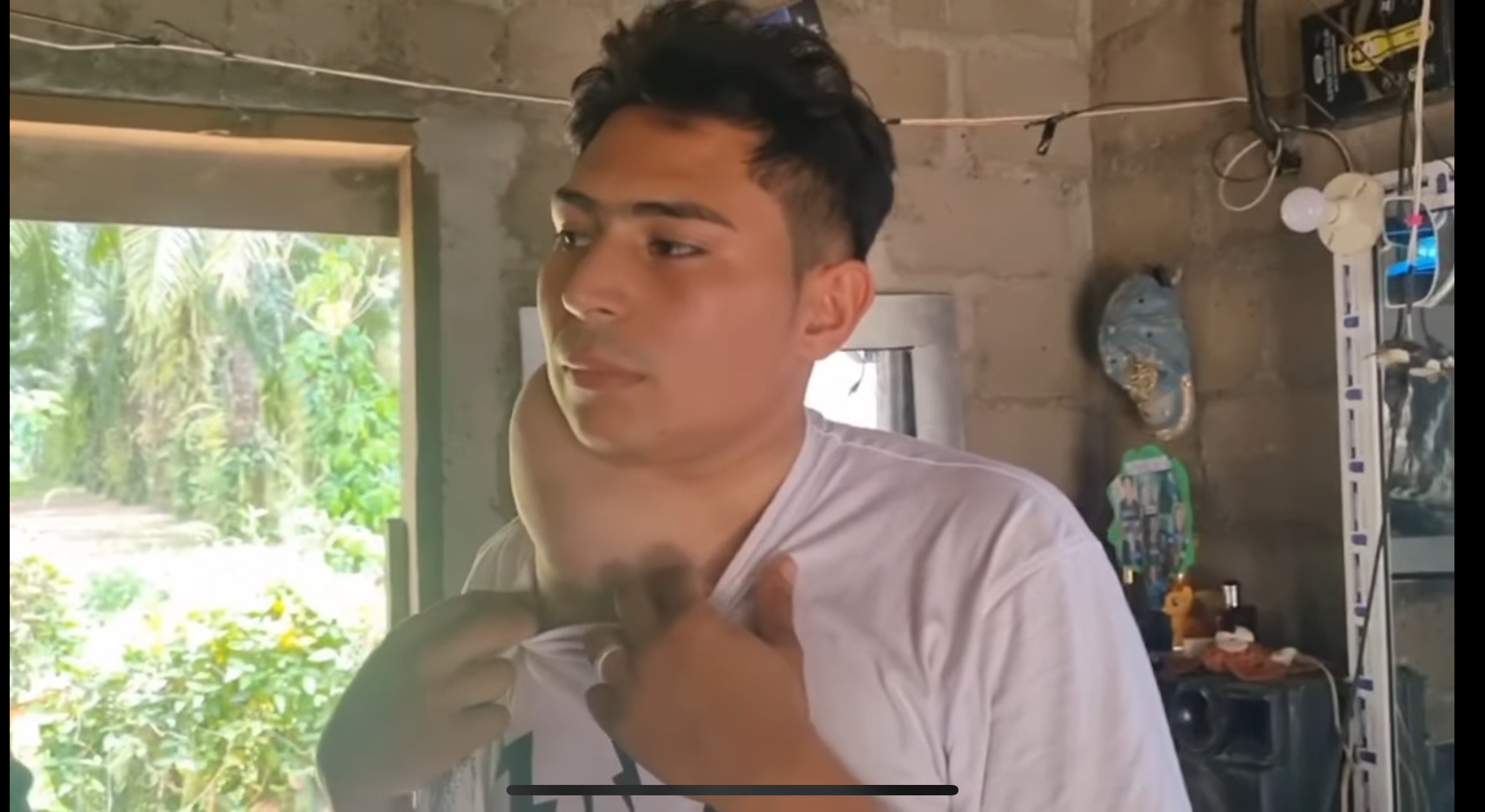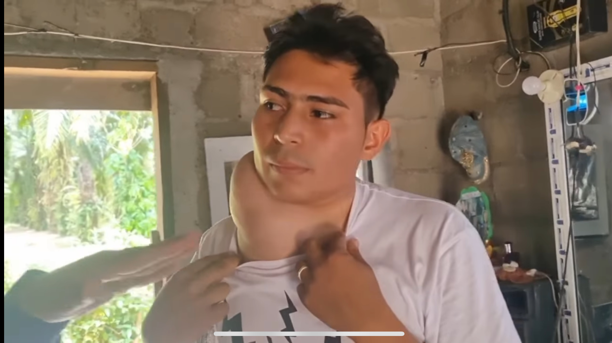 Alfredo es barbero y tenía su barbería en su casa ,pero de repente, le salió un pelota en su cuello , la que le ha venido creciendo .