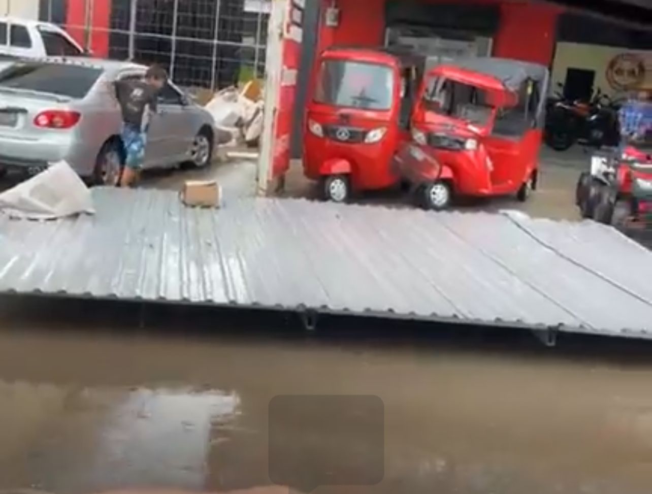 El joven que se ganaba la vida recolectando botellas de plástico, afanado corría por la calle evitando no mojarse, pero los vientos derribaron el techo de un local, y le cayó encima, justo cuando pasaba por este lugar.