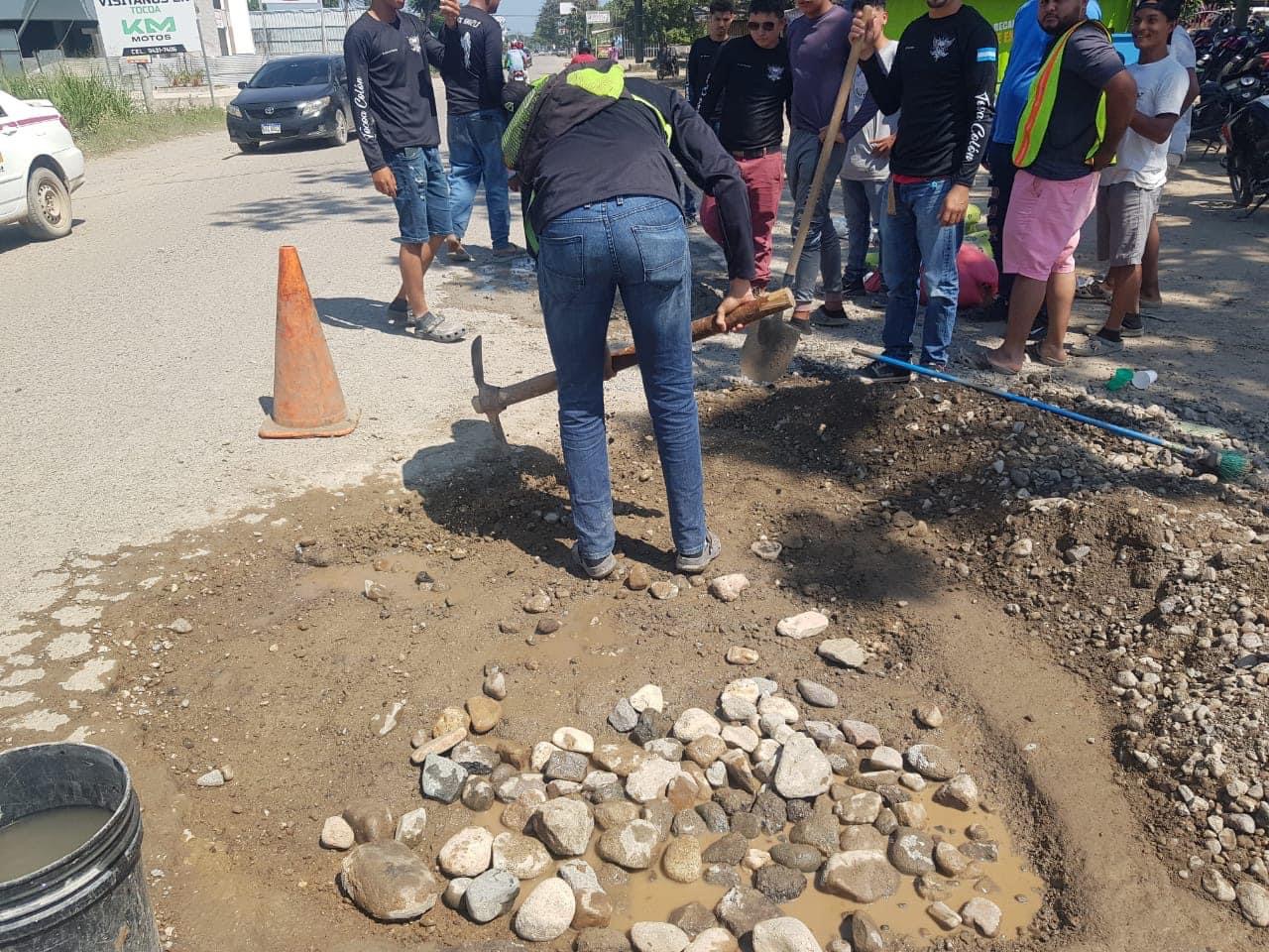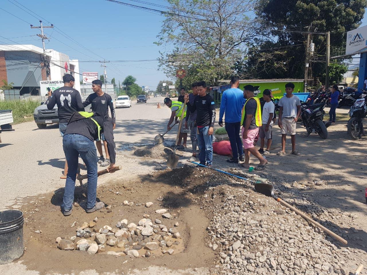 Varios agujeros que están en la salida de Tocoa a Trujillo fueron tapados por un grupo de motociclistas que están organizados y realizan obras sociales.