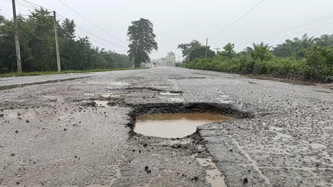 Si va de Colón hacia La Ceiba tenga cuidado al transitar por la Aldea del Esfuerzo donde los agujeros cada vez son más grandes .