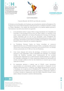 Como Presidenta Pro Témpore (PPT) de la Comunidad de Estados Latinoamericanos y Caribeños (CELAC), convoco con carácter urgente a una reunión de presidentes y jefes de Estado; próximo jueves 30 de enero a las 11:00 a.m. (hora de Honduras)», decía el llamado.