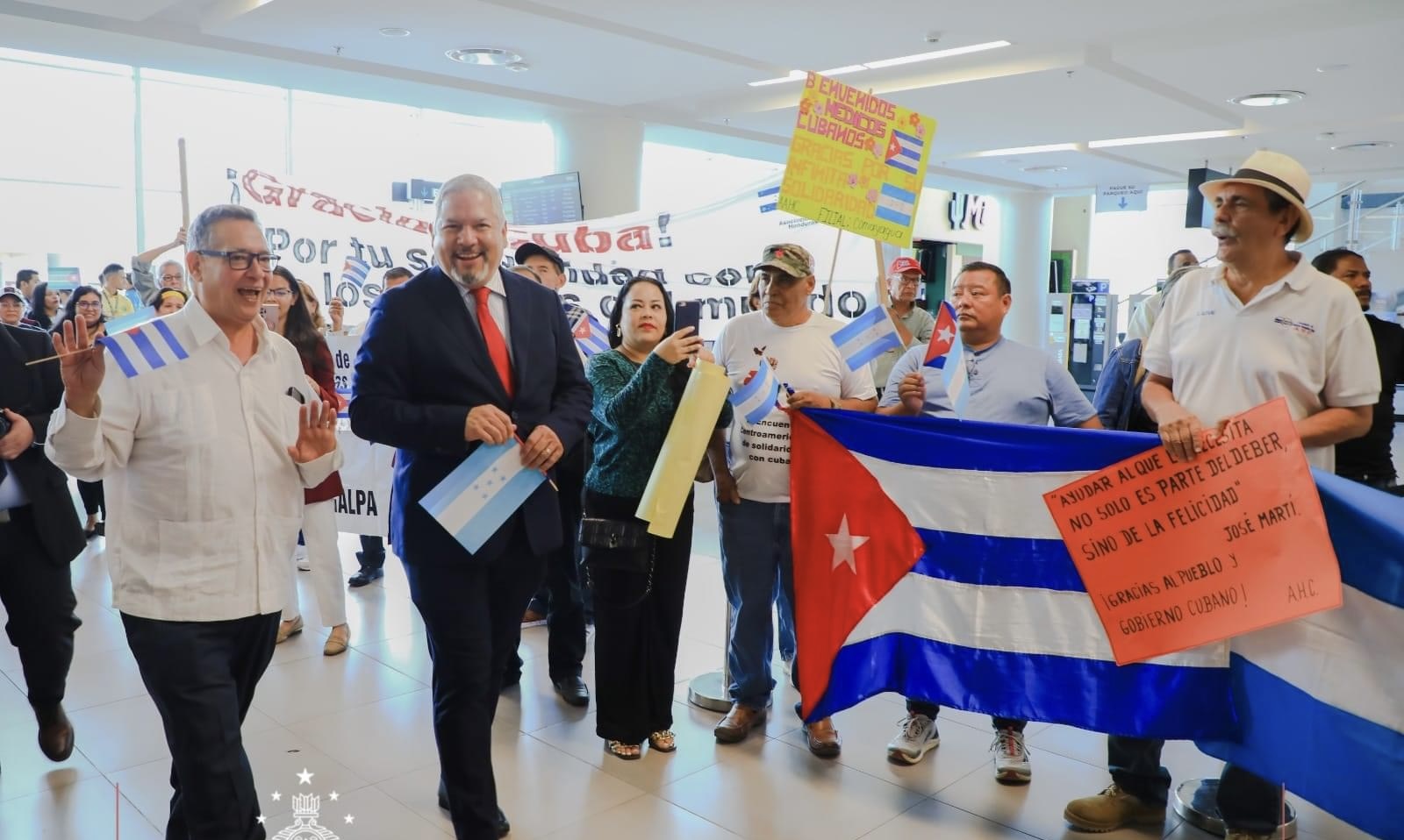 Los médicos fueron recibidos en el aeropuerto de Palmerola por la ministra de Salud, Carla Paredes, el canciller Eduardo Enrique Reina y un grupo de hondureños que les dieron la bienvenida con carteles.