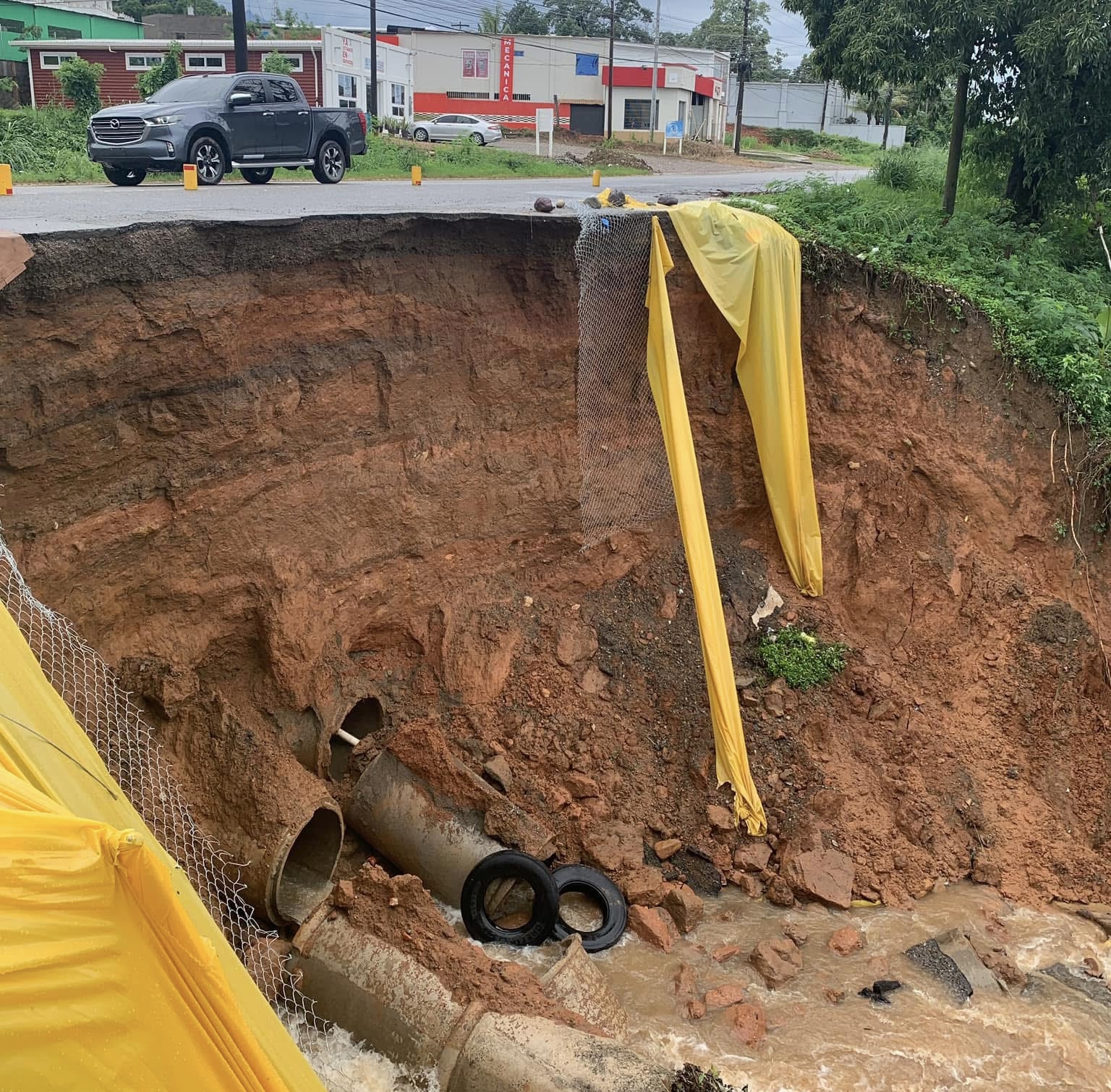 -En horas de la tarde continuaba cediendo parte de la carretera CA13, a la altura de la colonia El Manatial, en las cercanías de Asados El Gordo.