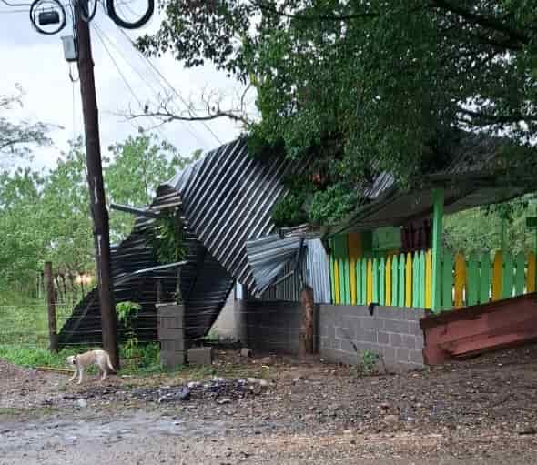 Lluvias con vientos derriban árboles y techos en Olanchito