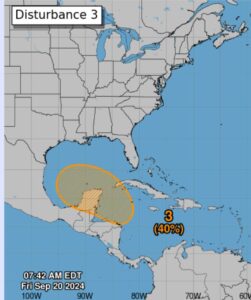 El centro de Huracanes mantiene 40% posible ciclón tropical, su desarrollo será gradual para la próxima semana, este sistema se movería al norte o al noroeste hacia el Golfo de México.