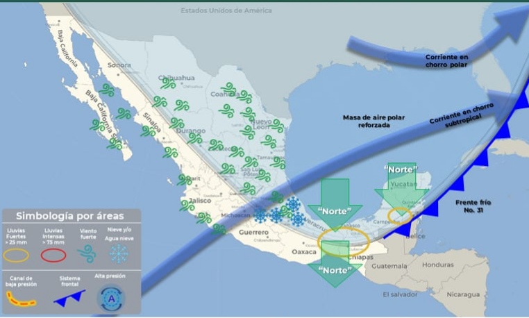 Los efectos de este fenómeno se empezarán a sentir el próximo lunes, por lo que la Secretaría de Gestión de Riesgos y Contingencias mantendrá una vigilancia de 72 de horas.
