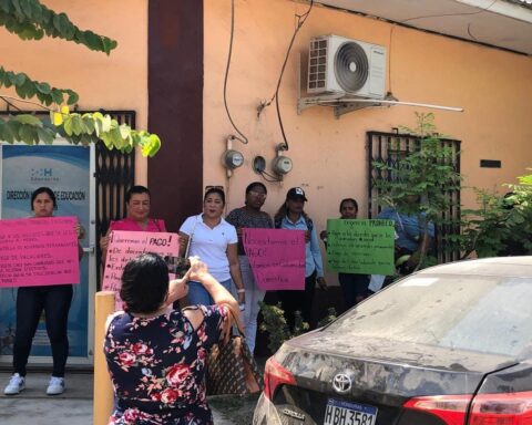 Tocoa,Colón – Maestros PROHECO protestan en las afueras de la Dirección distrital de educación de Tocoa por pagos atrasados de 4 meses. Los educadores piden al gobierno que se les haga el efecto sus meses que han trabajado sin recibir un tan