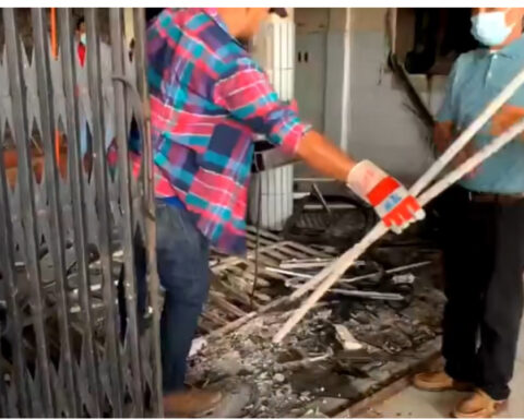 Tocoa,Colón- Gran cantidad de restos de hierro y otros metales se sacaron de lo que quedó de las oficinas Municipales incendiadas hace algunos días.empleados sacaron la chatarra . Varios empleados de la Alcaldía se integraron a las labores de limpieza ,después de