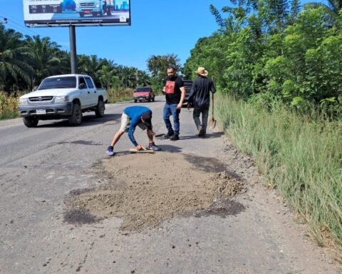 Tocoa,Colón – Ante la inoperancia del gobierno para reparar la carretera CA13 , en el tramo entre Zamora y esta ciudad los pobladores están tapando los agujeros . Más de 70 agujeros se están tapando en el tramo desde Zamora a Tocoa
