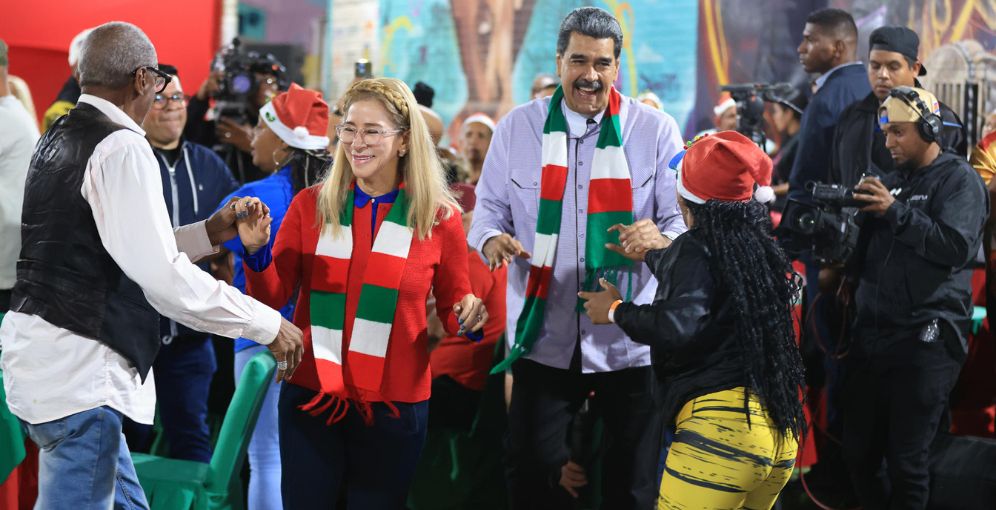 El presidente de Venezuela, Nicolás Maduro, encabezó una animada cena navideña en la parroquia de San Agustín, Caracas, donde cantó, bailó y compartió con vecinos mientras un grupo musical interpretaba gaitas, en un ambiente que calificó de «paz y felicidad». Con una bufanda de Navidad y rodeado de ciudadanos, el líder chavista aseguró que «el imperialismo no puede» con su país, en alusión al despliegue militar estadounidense en el Caribe y la confiscación reciente de dos buques con crudo venezolano.
