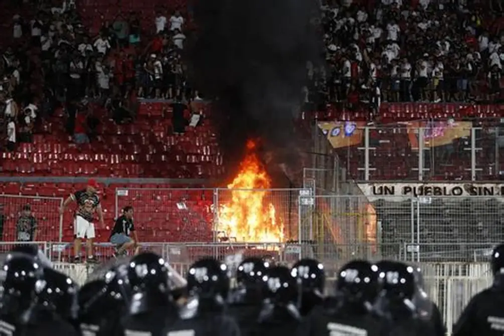 Los incidentes comenzaron sobre el final de la primera mitad, con el partido igualado a uno y un global de 2-1 en favor de los chilenos, cuando fanáticos del equipo visitante situados en una de las tribunas más altas del estadio comenzaron a lanzar butacas y trozos de la grada extraídos de la estructura hacia la parte baja, donde estaban hinchas del ‘Rojo’.
