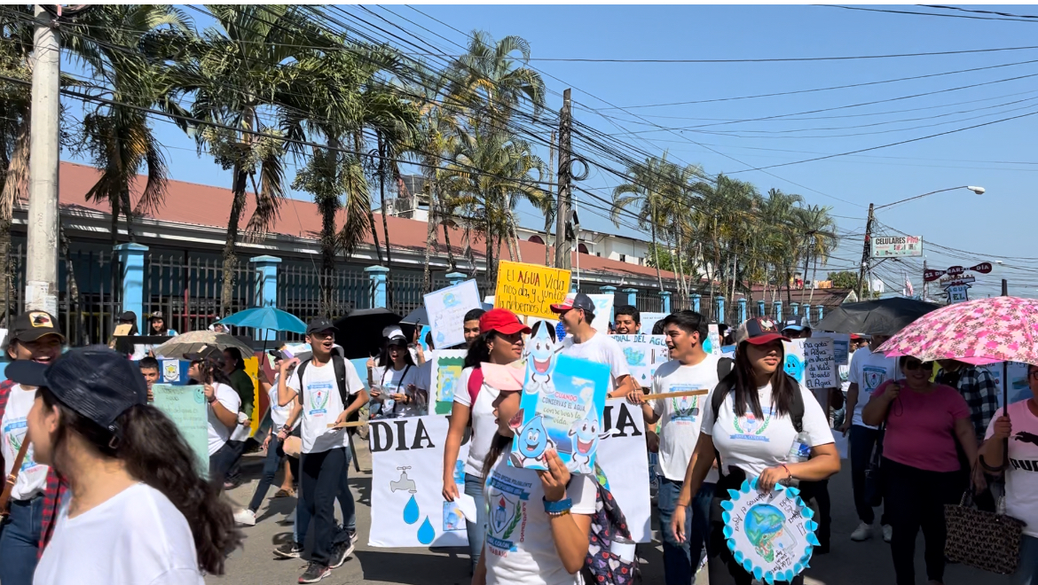 Iniciando frente a las instalaciones del Instituto 4de septiembre y terminando en la escuela Francisco Morazán,la caminata encabezada por la asociación de juntas de agua y también se unieron estudiantes de diferentes centros educativos.