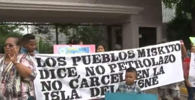 Tegucigalpa- Los pueblos misquitos han llevado su rechazo a la construcción de una cárcel de máxima seguridad en las Islas del Cisne hasta Casa de Gobierno, con pancartas y una fuerte presencia de organizaciones locales.