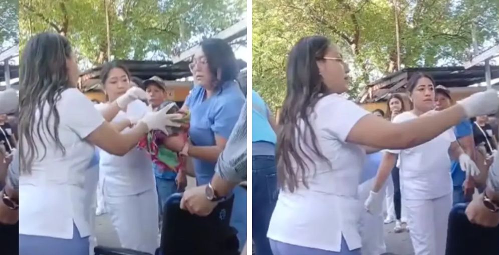 Un video difundido en medios locales captó el momento en que la madre parió en plena calle, rodeada de varias personas, incluidos menores de edad. En las imágenes se observa a la mujer de pie, apenas cubierta y manchada de sangre, mientras el personal de enfermería intenta asistirla tras el nacimiento. El recién nacido todavía se encontraba unido a la placenta y el cordón umbilical.