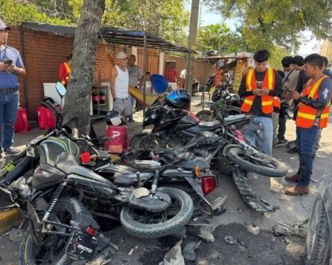 Un fuerte accidente de tránsito se registró en la primera calle frente al estadio Morazán en San Pedro Sula, cuando un vehículo tipo pick-up no se percató al cruzar la intersección e impactó contra otro vehículo, llevándose consigo a tres motociclistas “Delivery”
