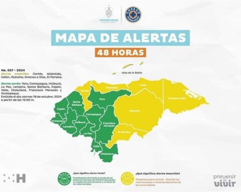 San Pedro Sula- La Secretaría de Gestión de Riesgos y Contingencias Nacionales (COPECO) elevó a Alerta Amarilla a siete departamentos de Honduras debido a las fuertes lluvias asociadas a un sistema de baja presión. Los departamentos afectados son: Cortés, Atlántida, Islas de