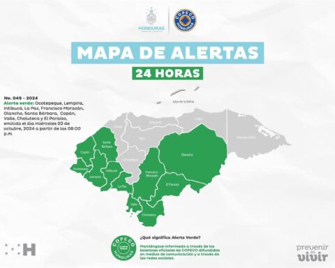 Tegucigalpa. La Secretaría de Estado en los Despachos de Gestión de Riesgos y Contingencias Nacionales (COPECO)decidió mantener la alerta verde en 11 departamentos de Honduras durante las próximas 24 horas. Lo anterior, debido a la persistencia de las lluvias en el territorio