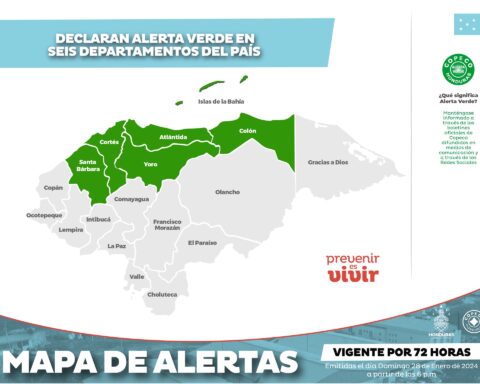 Tegucigalpa [] Una alerta por 72 hora desde las 6:00 pm de este domingo entró en vigencia en los departamentos de Colón, Atlántida, Yoro, Islas de la Bahía, Cortés y Santa Bárbara por el ingreso de un nuevo frente frío al territorio