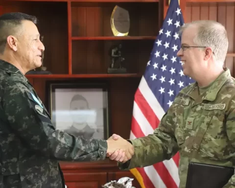 El jefe del Estado Mayor Conjunto de las Fuerzas Armadas de Honduras, general de brigada Héctor Benjamín Valerio Ardón, sostuvo una reunión de trabajo con el agregado militar y jefe del Grupo Militar de los Estados Unidos en Honduras, coronel Victor Allan