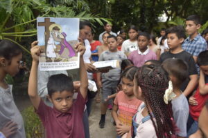 Niños de Sabá viven con regocijo un vía crucis dedicado a ellos