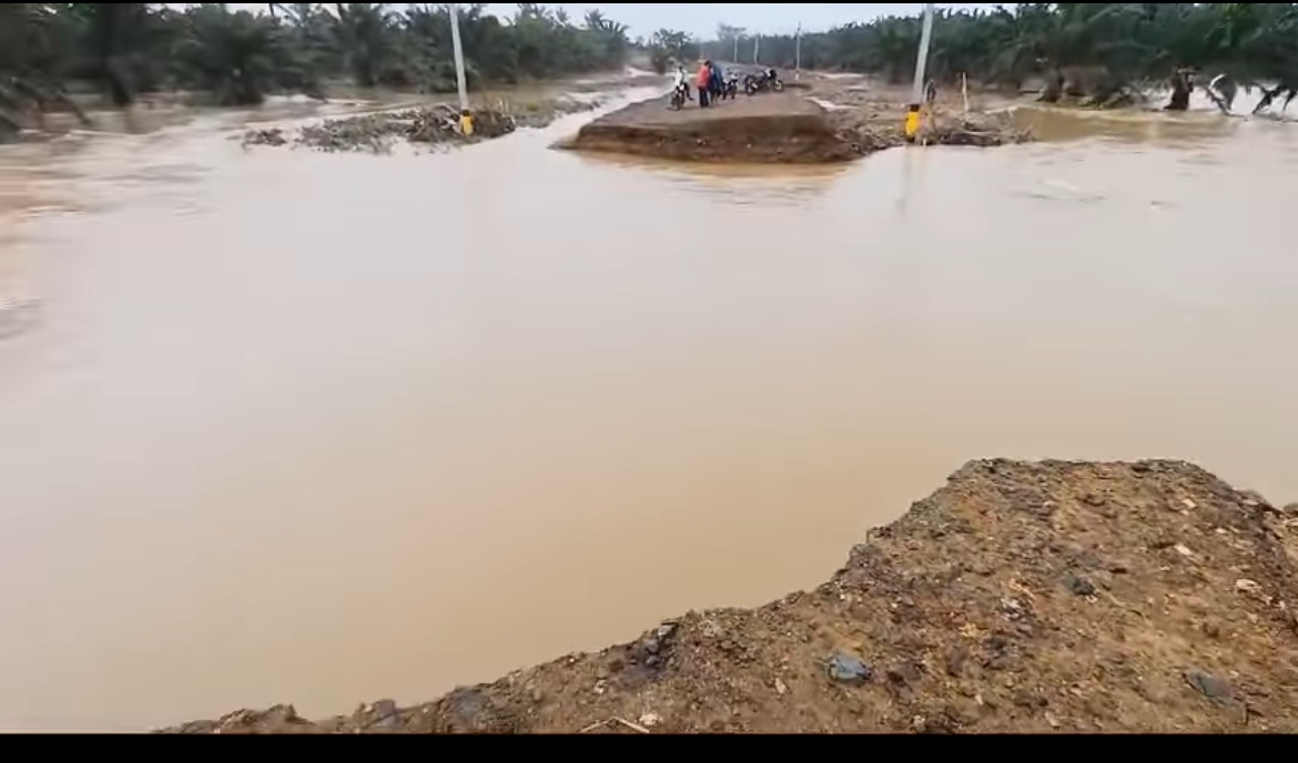 Las aguas del río Aguan corren por la carretera , los vehículos no pueden pasar y en motocicleta se llegan hasta un sector .