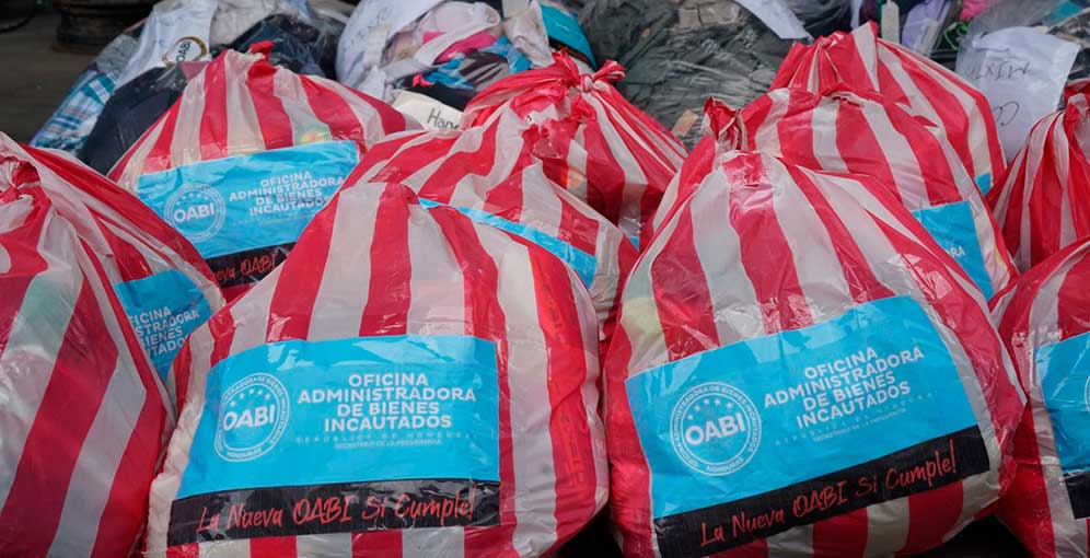 La Alcaldía Municipal del Distrito Central (AMDC) recibió un importante donativo de la Oficina Administradora de Bienes Incautados (OABI), consistente en 500 sacos de alimentos y 545 fardos de ropa, destinados a las familias damnificadas por las lluvias.