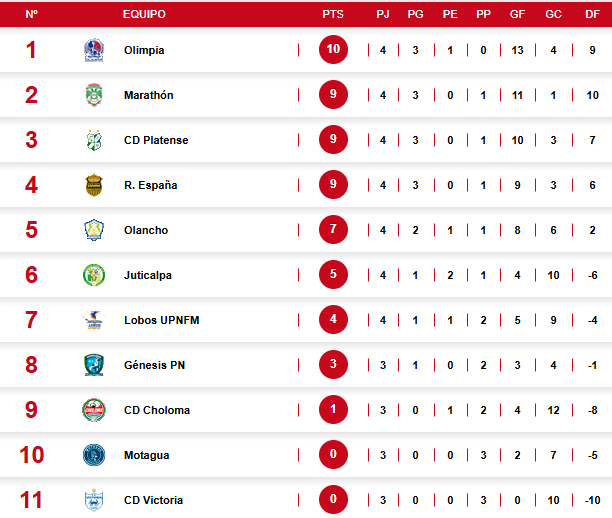 El equipo de Eduardo Espinel se mantuvo en la cima con 10 puntos, seguido de cerca por Marathón, Platense y Real España, que también ganaron en sus respectivos partidos.
