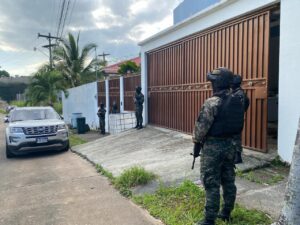 Con más de 14 allanamientos de domicilio en San Pedro Sula, La Ceiba y Santos Guardiola se lleva acabo esta operación, donde además realizan tres inspección judiciales para la recolección de indicios en relación al los delitos de tráfico de drogas y lavado de activos.