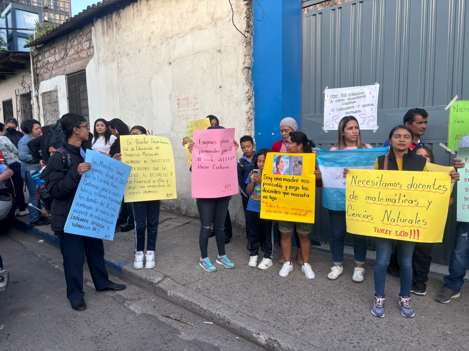 Tegucigalpa – Padres de familia y estudiantes del Centro de Educación Básica (CEB) Álvaro Contreras, ubicado en el barrio Abajo de la capital, realizaron este jueves una protesta pacífica para exigir la asignación inmediata de docentes en asignaturas clave como Matemáticas y Ciencias Naturales.