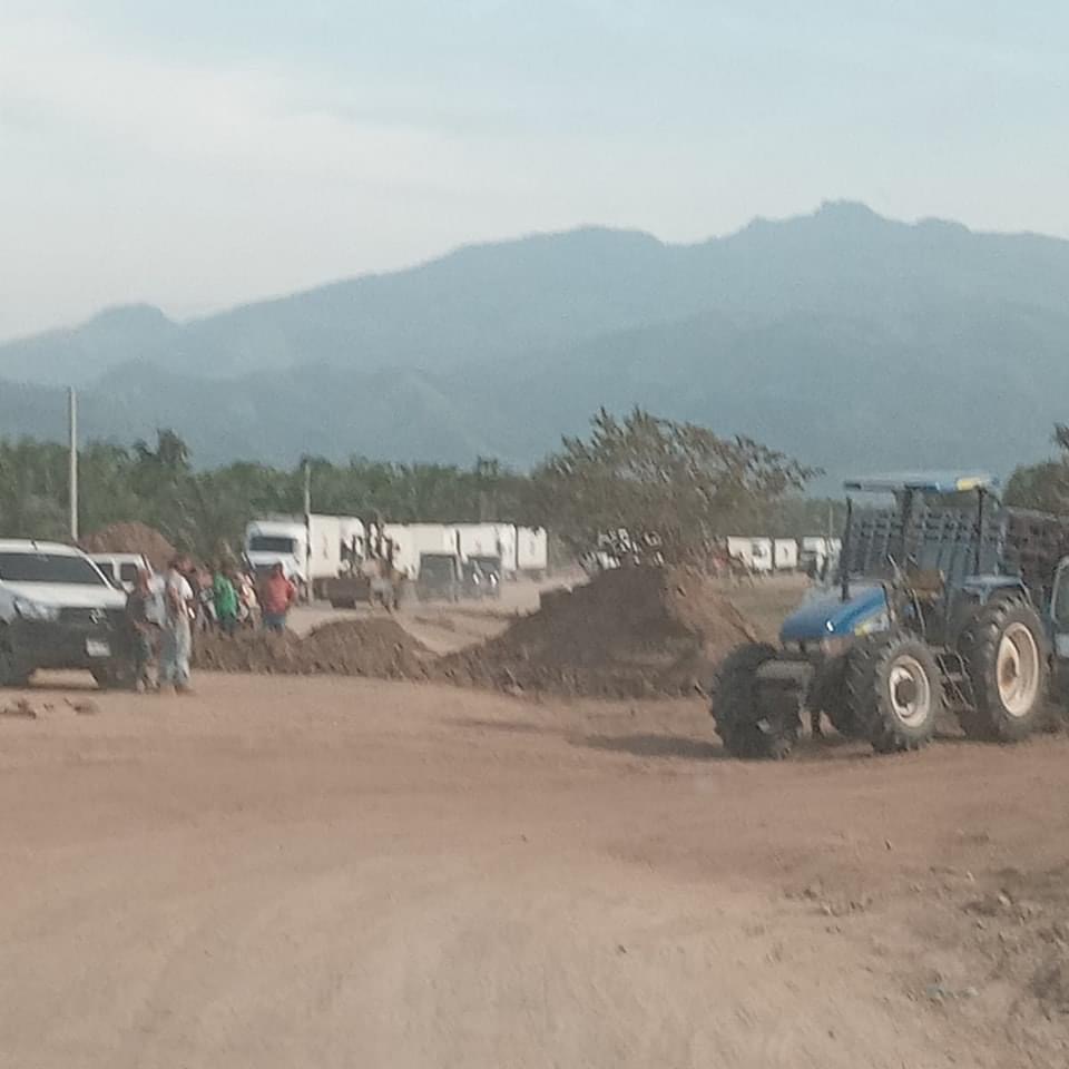 Esta tarde, maquinaria pesada, como volquetas, ha arrojado bultos de tierra en el centro de la calle que conecta los municipios de Sonaguera, Tocoa y Trujillo. Esta acción ha paralizado el tráfico y obstruido la única vía de flujo económico y vehicular que estaba en funcionamiento.