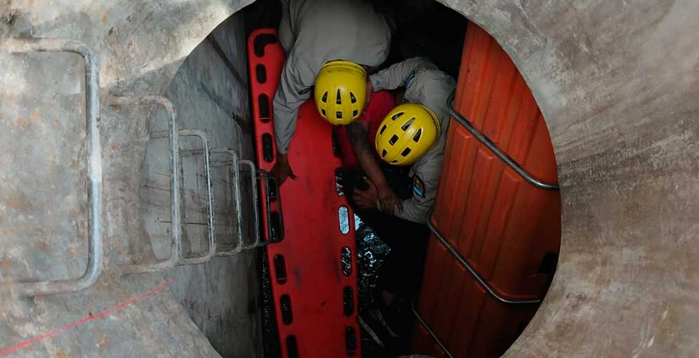 El incidente se reportó alrededor de la 1:45 de la tarde, movilizando a la unidad HRB-00-198 hacia el lugar. Al llegar, los rescatistas confirmaron que la víctima se encontraba atrapada dentro del acueducto y procedieron a ejecutar maniobras de rescate bajo protocolos de atención médica prehospitalaria.