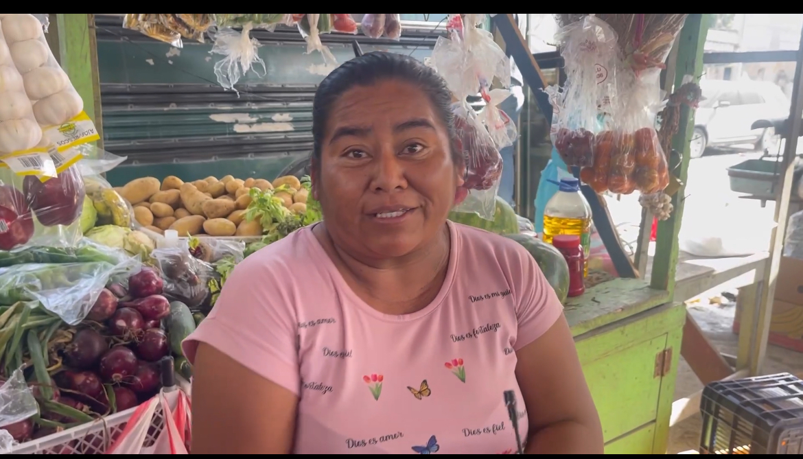 Mary Mejia vende frutas y granos básicos en la zona del mercado desde hace veinte años ,de las ganancias de su negocio ha financiado los estudios de sus hijos.