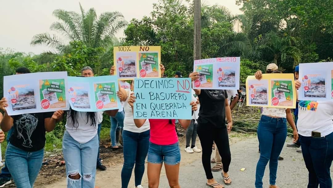 “Decimos cien por ciento no al basurero,no al basurero en Quebrada de Arena “, dicen las pancartas que portan.