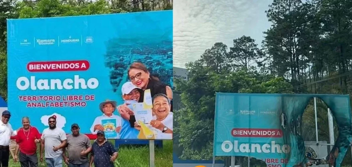 En pleno corazón de Olancho, tierra natal del expresidente “Mel” Zelaya y esposo de la mandataria Xiomara Castro, el gobierno decidió colocar un vistoso rótulo cerca de la entrada a dicho departamento que duro menos que una promesa de compaña política que proclamaba con orgullo: