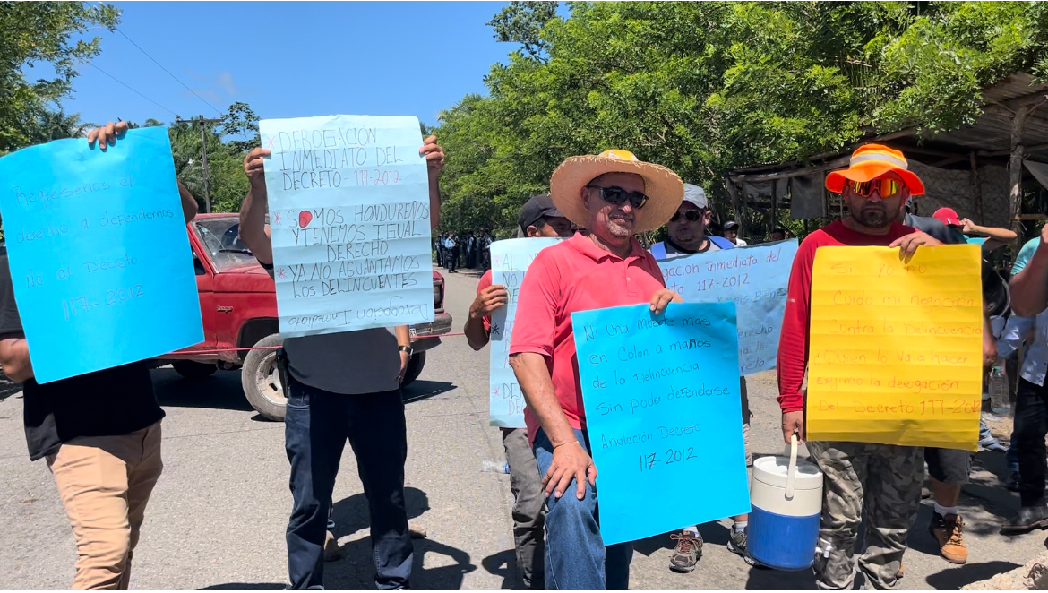 Medardo Mencias uno de los ciudadanos que protestó dijo que el decreto no ha servido para bajar la criminalidad en el departamento de Colón .