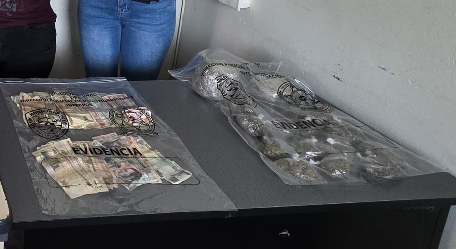 Durante la operación se les decomisaron 1,600 lempiras en efectivo, dos celulares y los objetos utilizados para trasladar la droga.