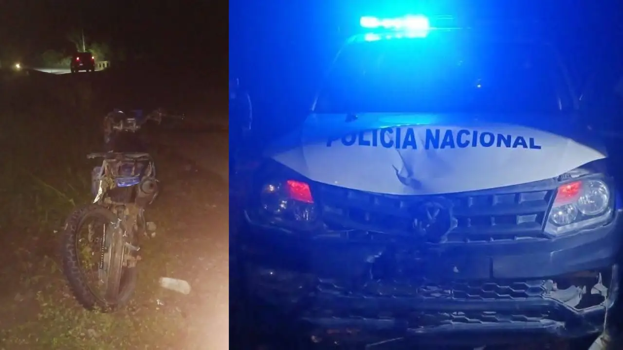 Según un comunicado oficial de la Unidad Departamental de Prevención N.º 02 (UDEP-02), la patrulla con registro PN-791, asignada a tareas preventivas, colisionó por alcance contra una motocicleta en el tramo carretero CA-13, un sector sin alumbrado público y con baches, bajo condiciones climáticas adversas debido a la lluvia.