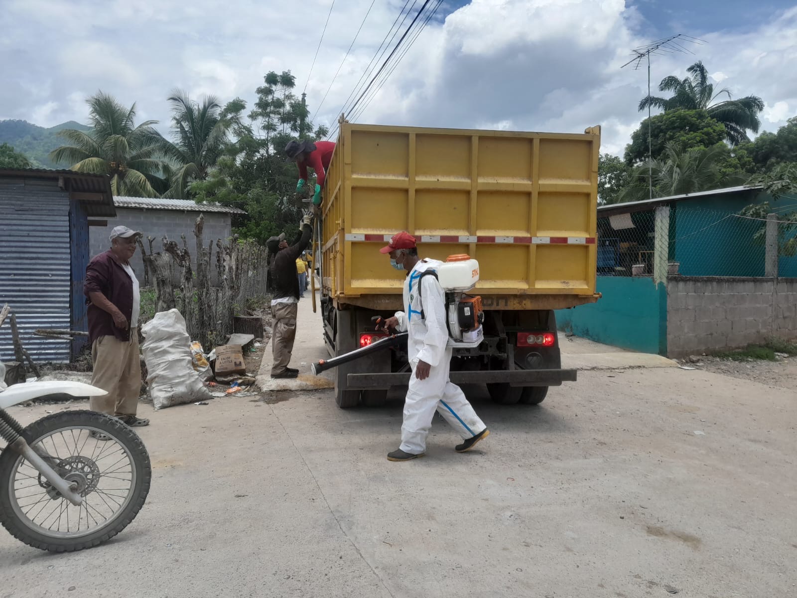 La Alcaldía Municipal envió la volquete para ayudar en el operativo de limpieza y también llegó el equipo de fumigación .