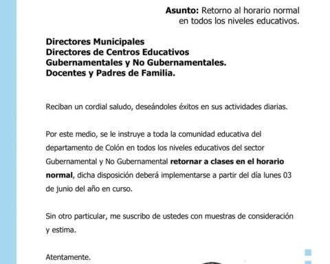 La medida permitirá a los docentes a reducir sus horas clases, «es decir que terminará 15 minutos antes, pues queremos que los estudiantes salgan a las 10:30 am los de la jornada matutina, y en la tarde la salida sea antes de las 4:00 pm», detalló Padilla.