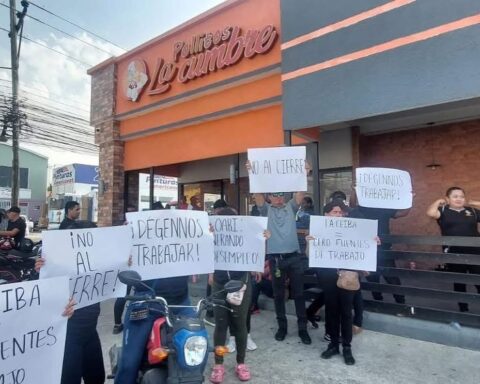 La Ceiba. Los Empleados de las empresas que fueron allanadas la semana anterior, reclamaron hoy a la Oficina Administradora de Bienes Incautados, OABI, en un plantón realizado en uno de los establecimientos conocido como Pollitos La Cumbre por la inseguridad laboral que