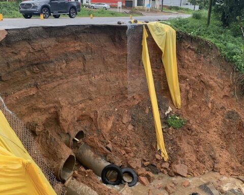 La Ceiba,Atlántida – Las lluvias se han llevado una parte de la carretera CA-13, antes de llegar a la vía que conduce al muelle de cabotaje en La Ceiba, departamento de Atlántida. -En horas de la tarde continuaba cediendo parte de